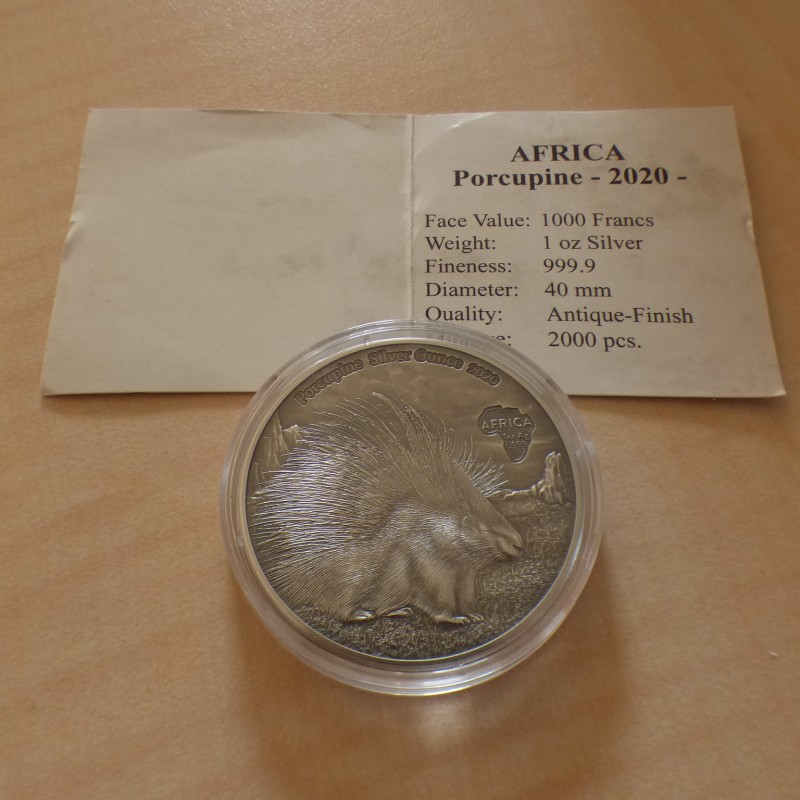 Congo 1000 CFA 2020 Porc épique antique finish argent 99.9% 1 oz