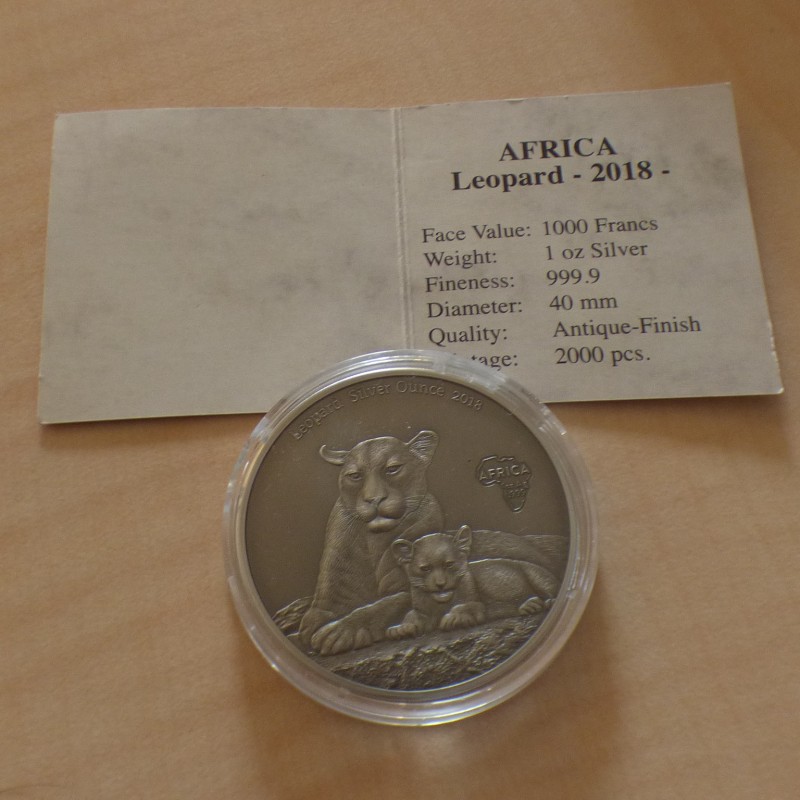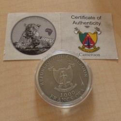 Cameroun 1000 CFA 2018 Leopard antique finish argent 99.9% 1 oz + CoA