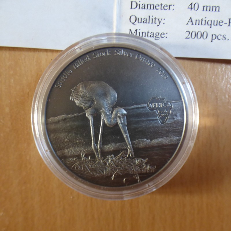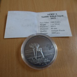 Congo 1000 CFA Jabiru 2019 antique finish argent 99.9% 1 oz + CoA