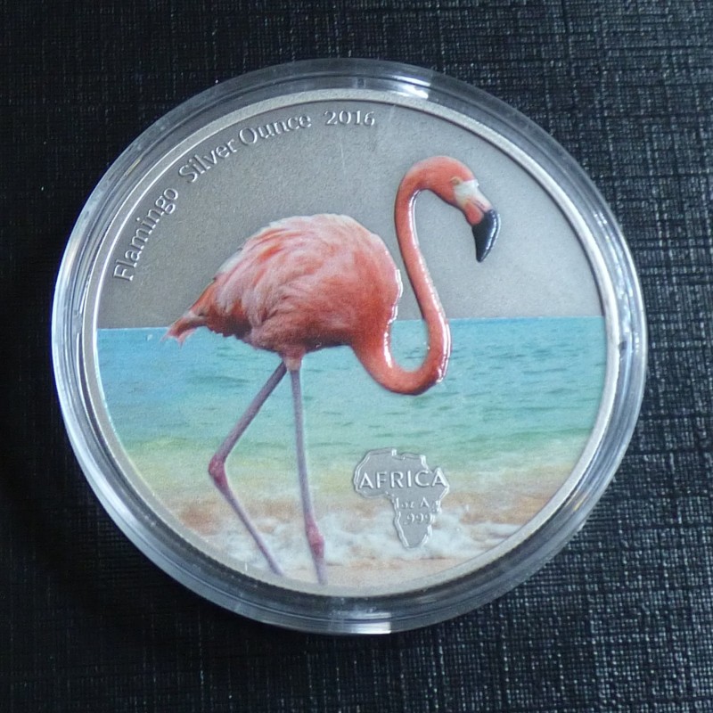 Ghana 5 Cedis 2016 Flamant Rose coloré finition antique argent 99.99% 1 oz + CoA