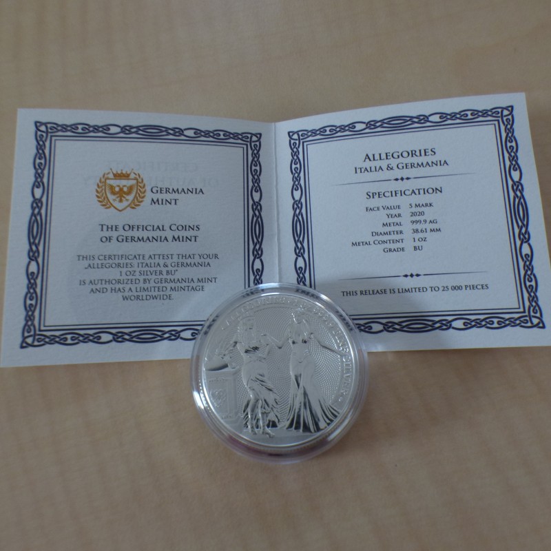 Ronde 5 Mark Germania & Italia 2020 1 oz argent 99.9%
