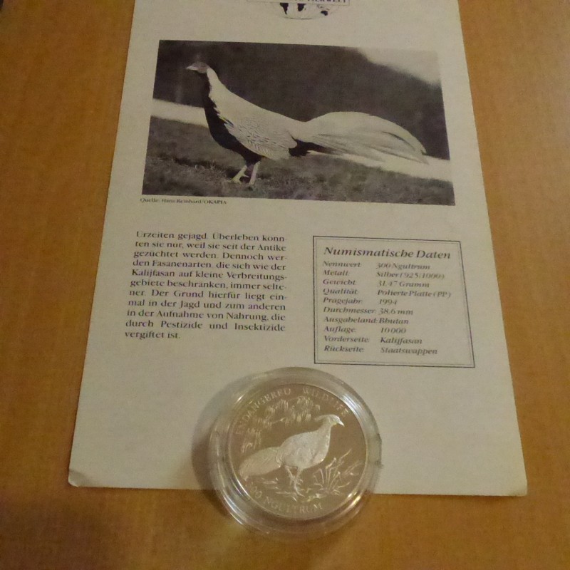 Bhoutan 300 Ngultrum 1994 Faisan PROOF argent 92.5% (31.4 g)