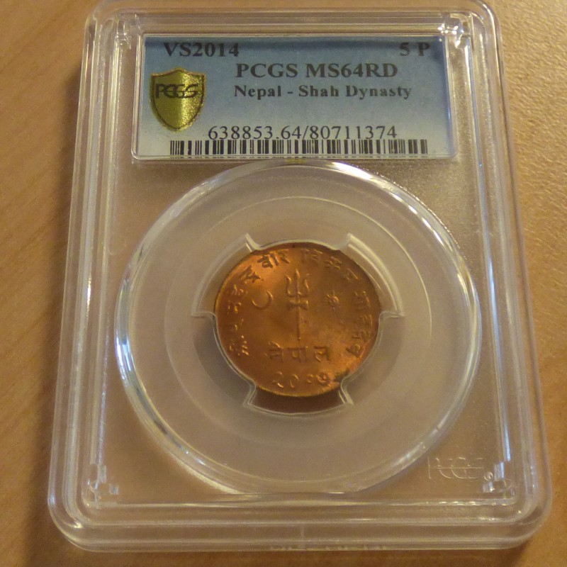 Nepal 5 Paisa VS 2014 (1957) Dinastie Shah bronze 3.85 g MS64RB (SPL+)