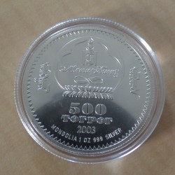 Mongolie 500 Togrog 2003 Chèvre doré en argent 99.9% 1 oz