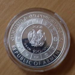 Armenie 100 DRAM 2008 Scorpion Zodiaque coloré PROOF en argent 99.9% 1 oz
