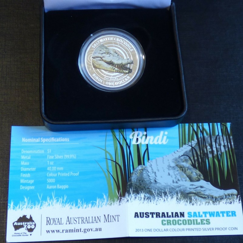 Australie 1$ Crocodile Bindi RAM 2013 PROOF coloré argent 99.9% 1 oz (Boite+CoA)