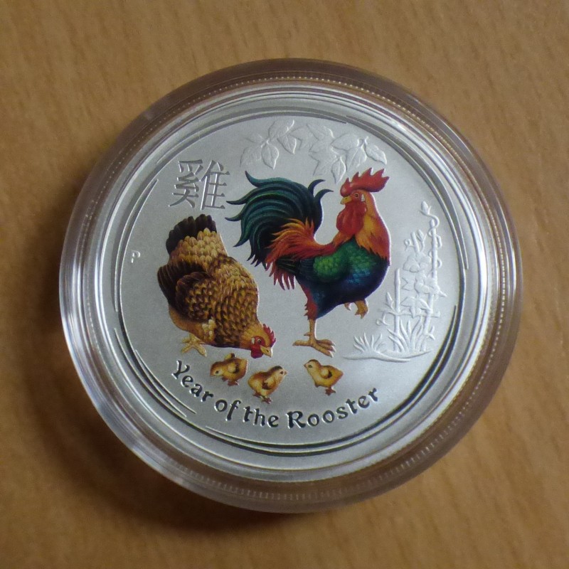 Australie Année du coq 2017 coloré argent 99.9% 1/2 oz