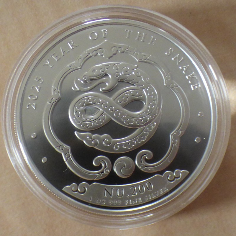 Bhoutan 200 Nu 2025 Année du Serpent en argent 99.9% 1 oz