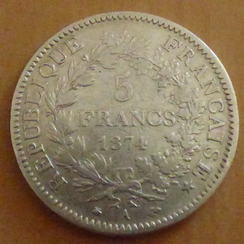France 5 Francs 1874A TB argent 90% (25 g)