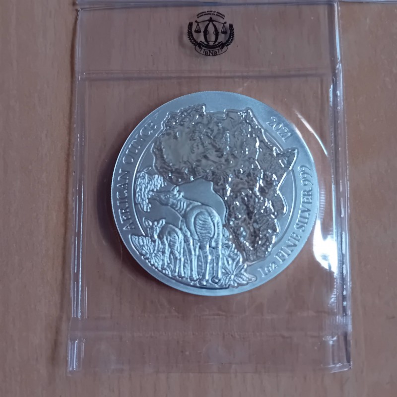 Rwanda 50 Amafaranga 2021 Okapi silver 99.9% 1 oz