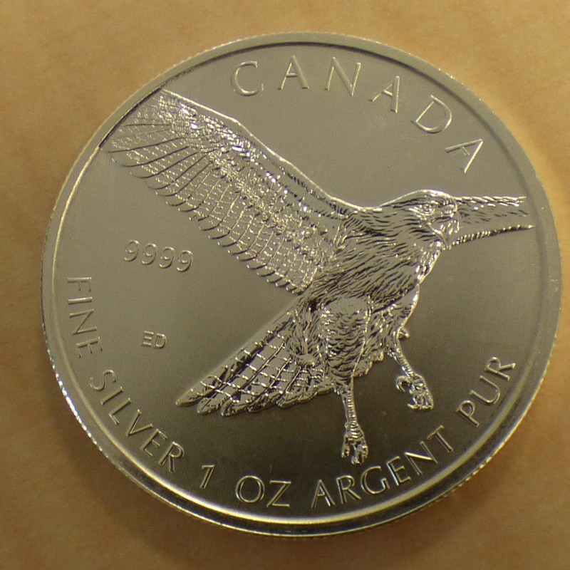 Canada 5$ Oiseaux de proie Bussard Red Tailed Hawk 2015 en argent 99.99% 1 oz