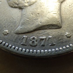 Espagne 5 pesetas 1871 (74) DE-M en argent 90% (25g) TB+