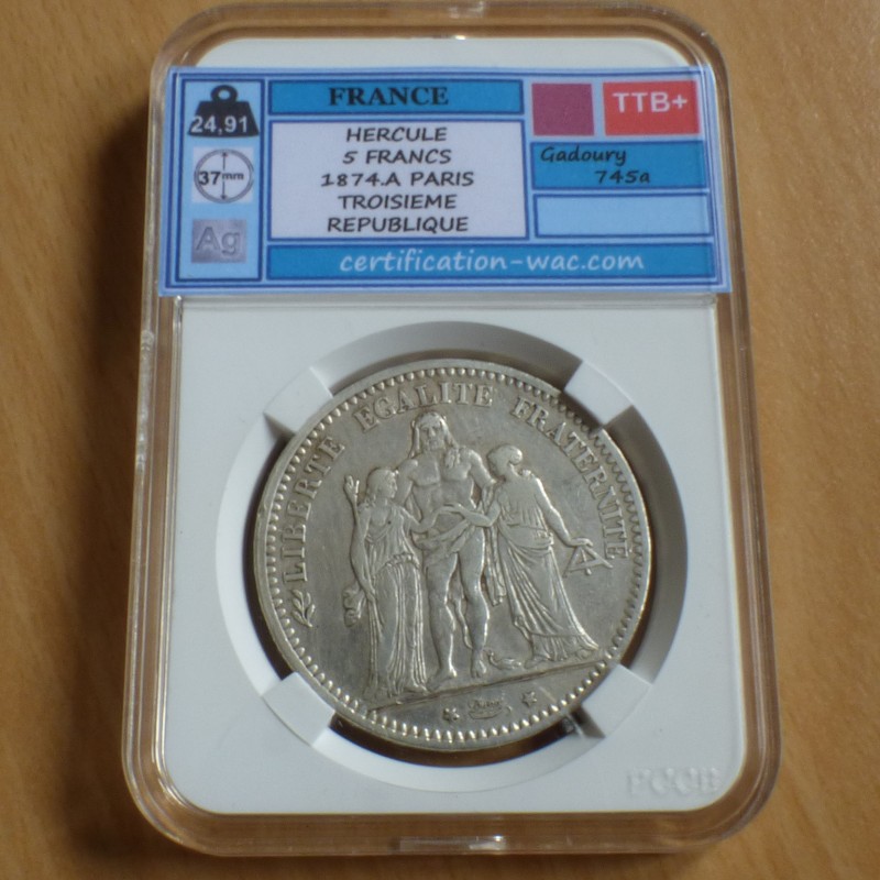 France 5 Francs 1874-A TTB+ argent 90% (25 g) sous SLAB
