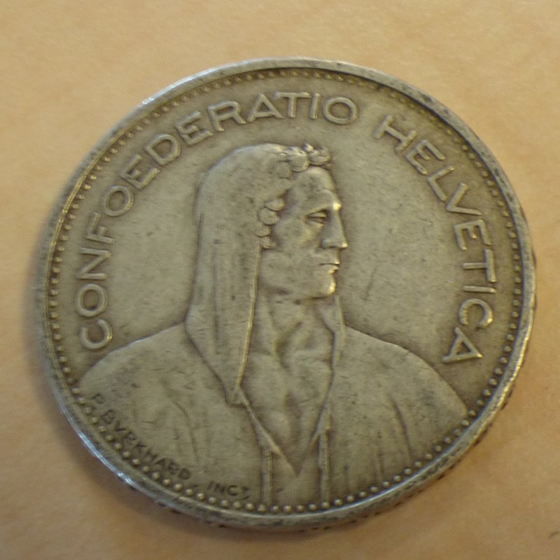 Suisse 5 francs Berger 1932-B en argent 83.5% (15 g) TB+
