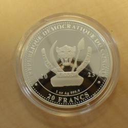 Congo 20 francs Raies 2023 argent 99.9% 1 oz