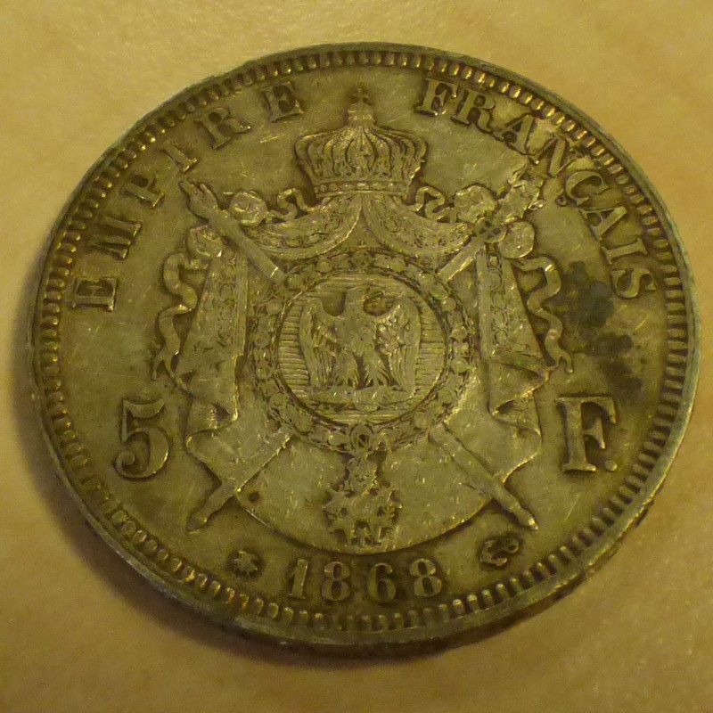 France 5 Francs 1868-A Napoleon III en argent 90% (25g)