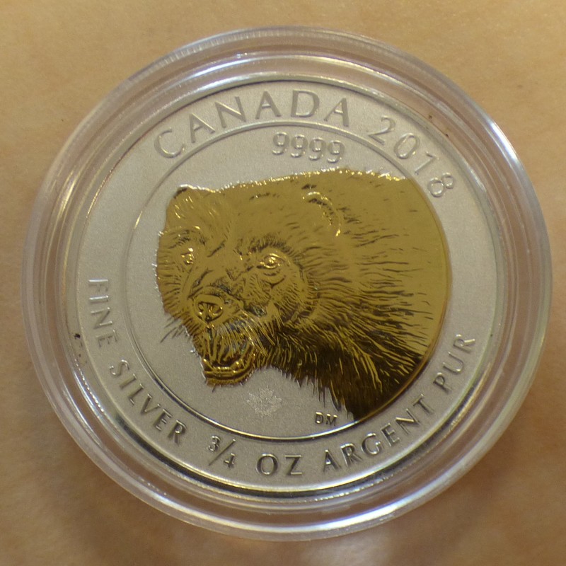 Canada 5$ Predateur "Loup" 2018 doré en argent 99.99% 1 oz