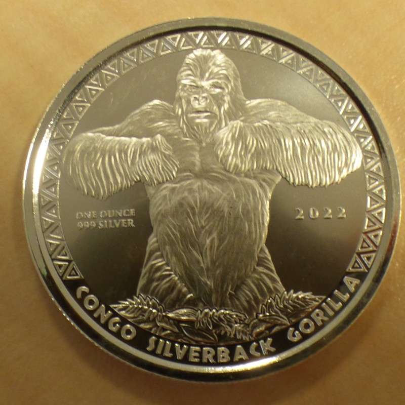 Congo 500 CFA Gorille 2022 argent 99.9% 1 oz