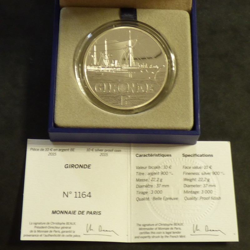 France 10 euros 2015 "Gironde" Belle Epreuve en argent 90% (22.2 g)