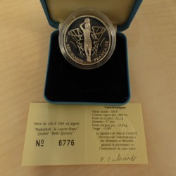 France 100 francs 1991 Basketball Lancer Franc PROOF argent 90% (22.2 g)+Boite+CoA