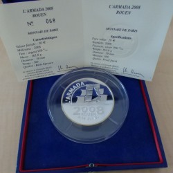 France 20 euros 2008 L'ARMADA ROUEN PROOF 163.8g argent 95%+Boite+CoA