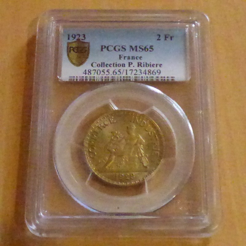 France 2 francs 1923 Chambre de Commerce MS65 Cuproaluminium 8g