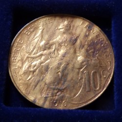 France 10 centimes 1916 Bronze 10g (SUP, XF, VZ)