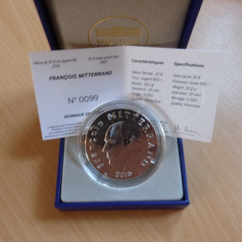 France 10 euros 2015 Mitterrand Belle Epreuve en antique argent 90% (22.2 g)+Boite+CoA