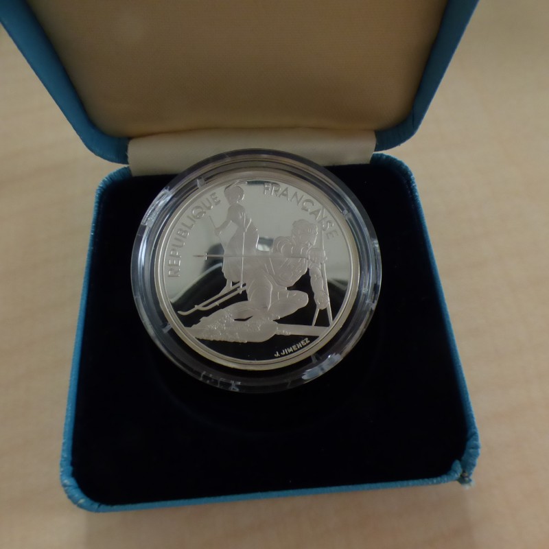 France 100 Francs 1990 JO Albertville PROOF Ski Slalom argent 90% (22.2 g)+Boite