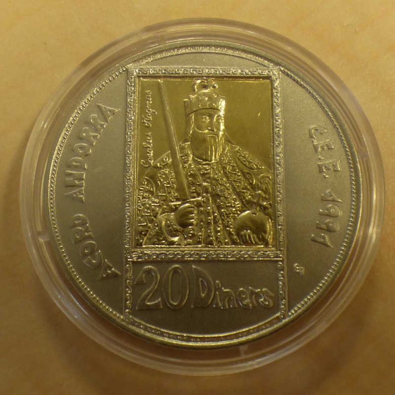 Andorre 20 Diners 1992 Charlemagne 1991 argent 92.5% (26g) avec insert 1.37g d'or