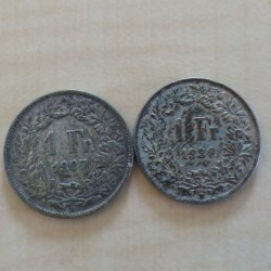 Suisse 1 franc 1907+1939 argent 83.5% (2*5 g)