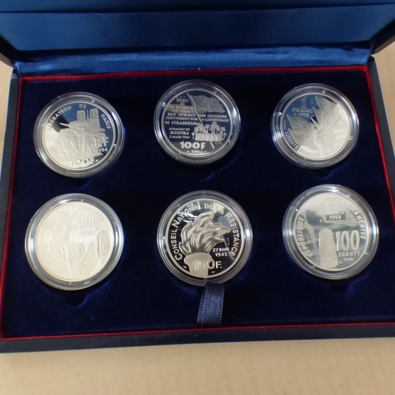 Coffret 6 pièces de 100 Francs ESSAI 1993/1994 LIBERATION PROOF argent 90% 6*22.2g (pas de CoA)
