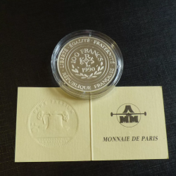 France 100 Francs 1989 JO Albertville PROOF Danse de Couple argent 90% (22.2 g)+Boite+CoA