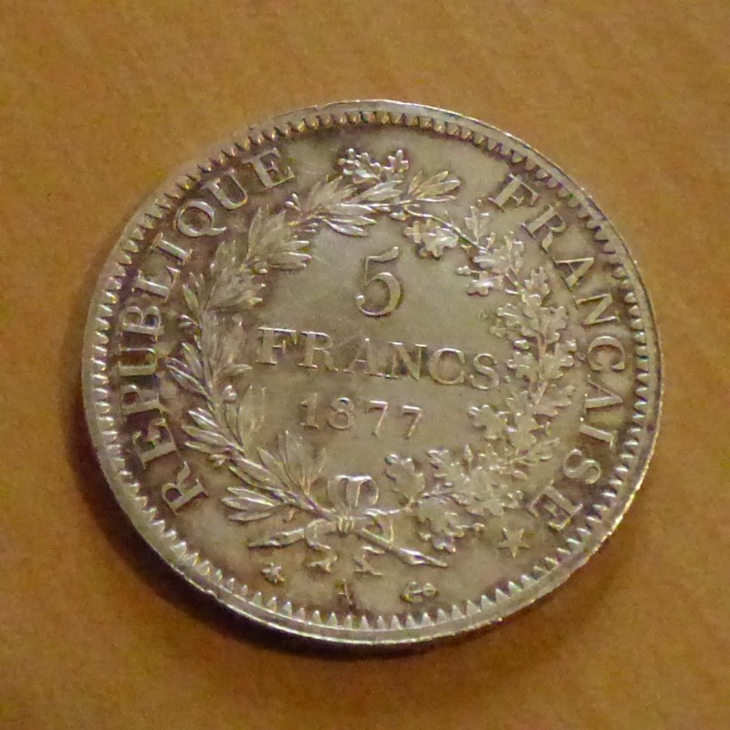 France 5 Francs Hercule 1877 A TTB++ argent 90% (25 g)