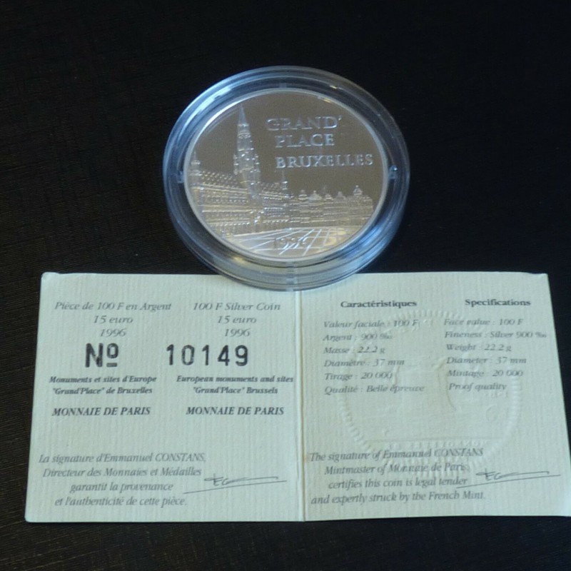 France 100 francs 1996 Bruxelles PROOF argent 90% (22.2 g)+CoA