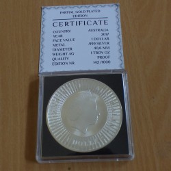 Australie 1$ Kangourou 2017 doré argent 99.9% 1 oz + CoA