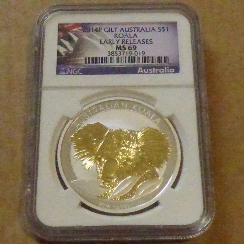 Australie 1$ Koala 2014 dorée MS69 (NGC) argent 99.9% 1 oz