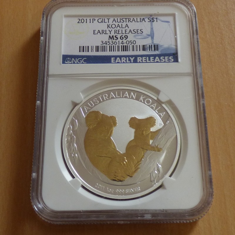 Australie 1$ Koala 2011 doré MS69 argent 99.9% 1 oz RARE