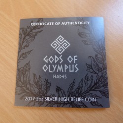 Iles Cook 5$ Olympe HADES 2017 antique finish argent 99.9% 2 oz