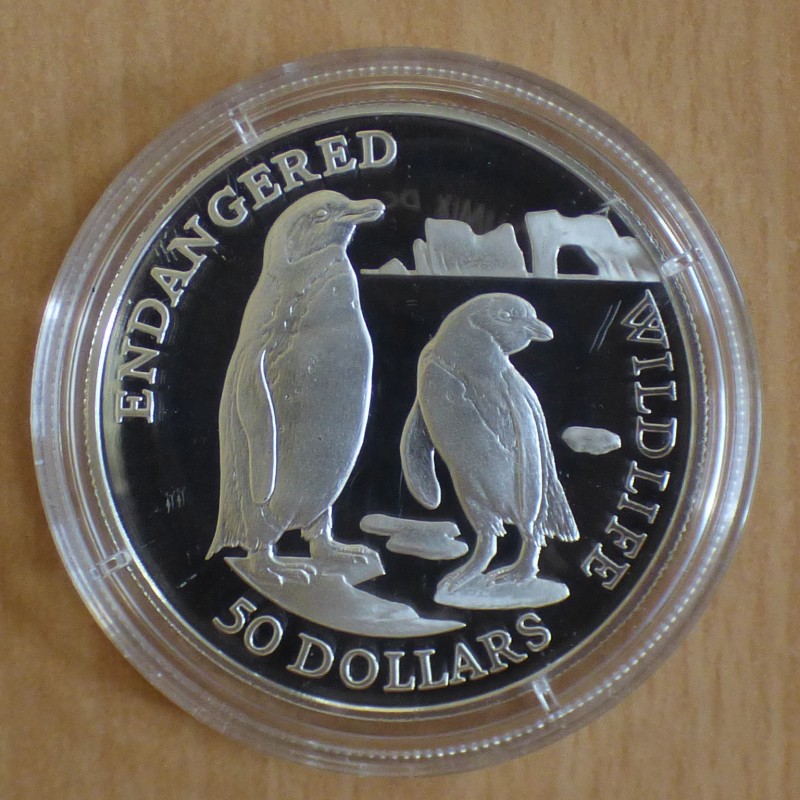 Iles Cook 50$ 1991 Endangered Wildlife Pingouin PROOF argent 92.5% (19.2 g)