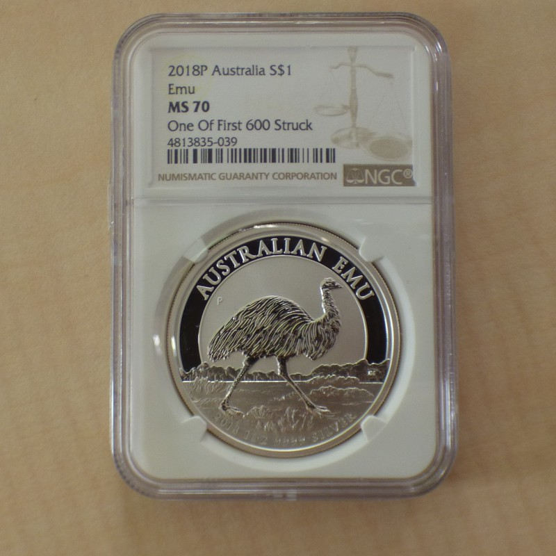 Australie 1$ Emeu 2018 NGC MS70 en argent 99.9% 1 oz