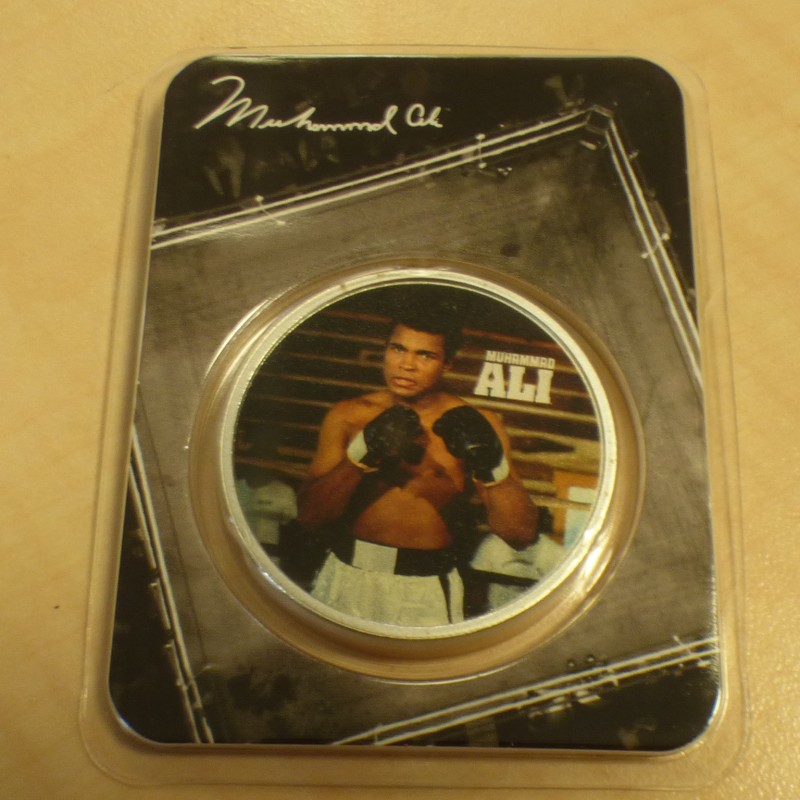 Niue 2$ Mohamed Ali 2023 coloré argent 99.9% 1 oz sous carte
