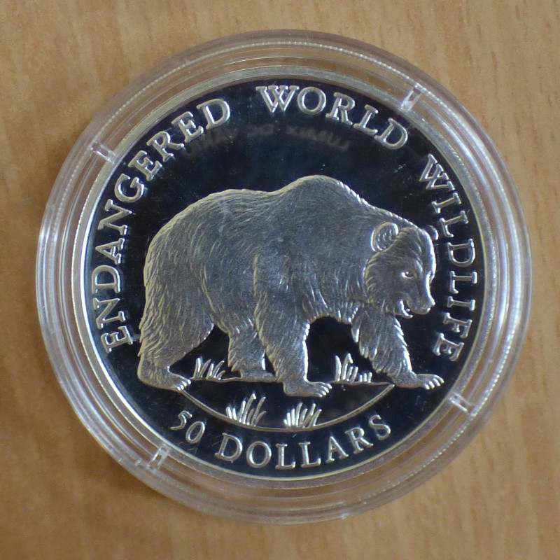 Iles Cook 50$ 1990 Endangered Wildlife OURS PROOF argent 92.5% (19.2 g)