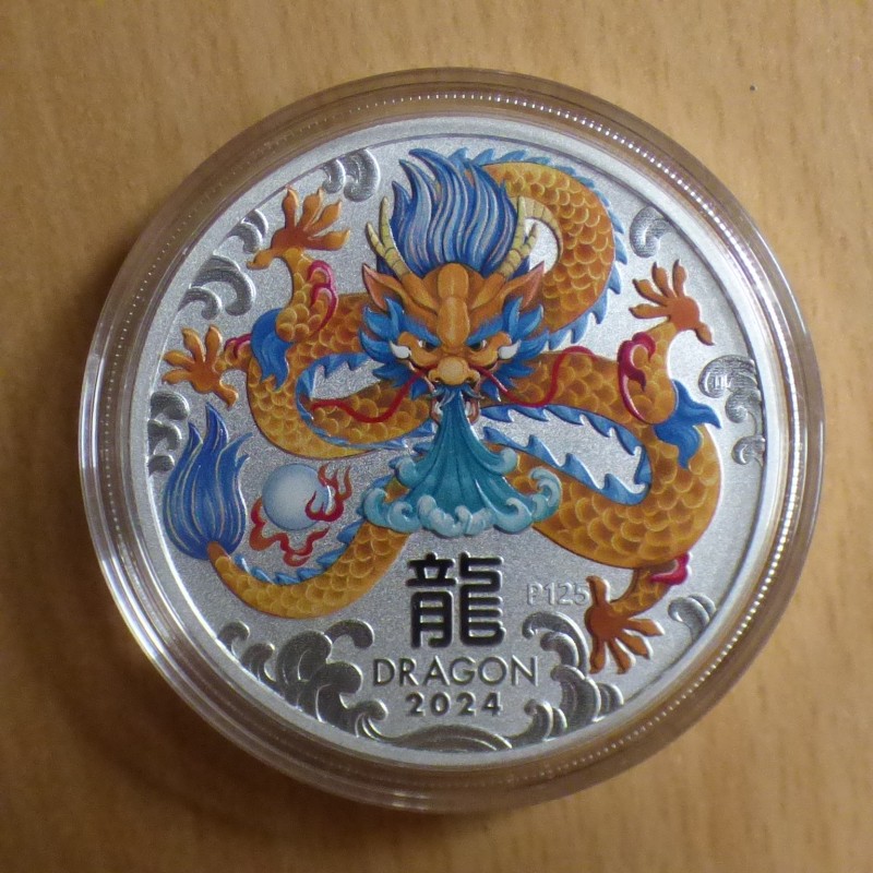 Australie 1$ Lunar 3 Année du dragon 2024 coloré argent 99.9% 1 oz