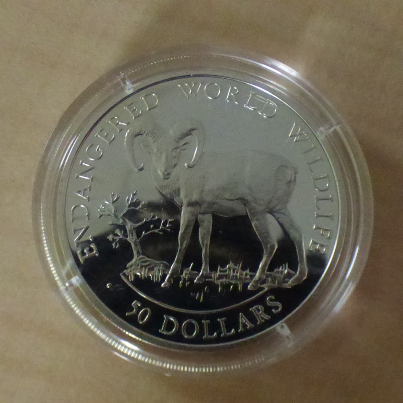 Iles Cook 50$ 1990 Endangered Wildlife Mouflon PROOF argent 92.5% (19.2 g)