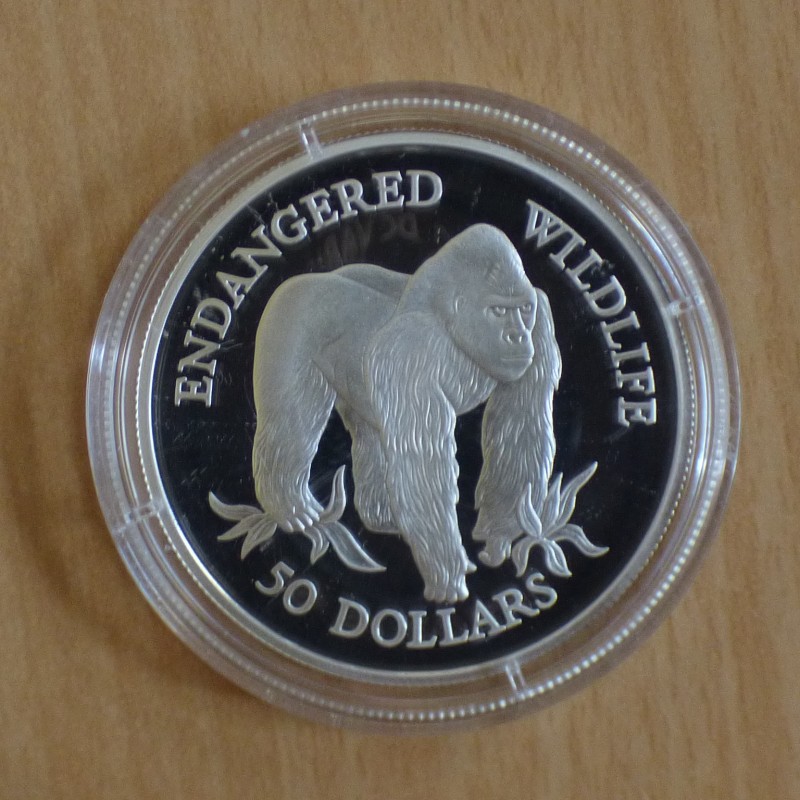 Iles Cook 50$ 1992 Endangered Wildlife Gorilla PROOF argent 92.5% (19.2 g)