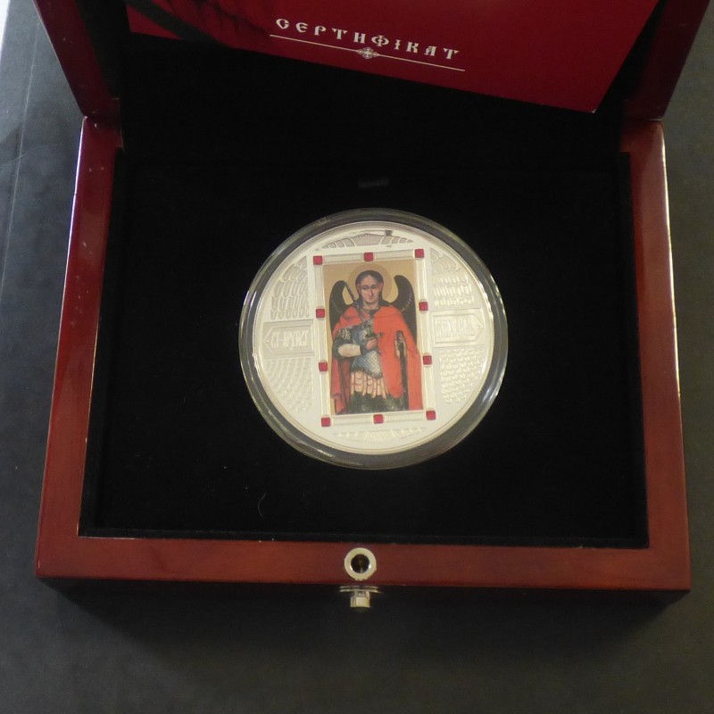Fiji 5$ 2012 Archange Michel Orthodoxe coloré argent 99.9% avec 10 pierres rouges (62.2 g)