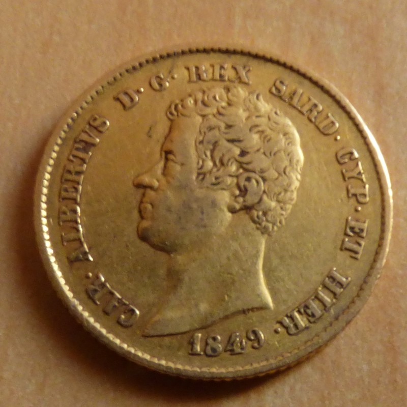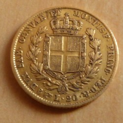 Italie 20 lires 1849 Turin P (Aigle) Charles Albert en or 90% (6.45 g) TB+/TTB