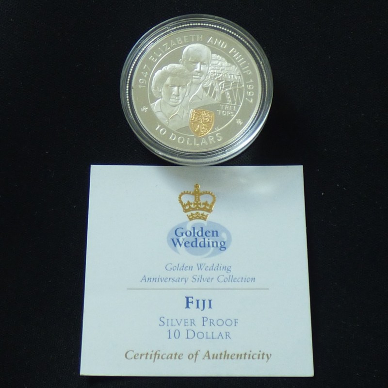 Fiji 10$ 1997 "Noces d'Or" PROOF en argent 92.5% (20 g) avec camée doré
