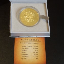 Russie 3 roubles 2017 Saint George doré en argent 99.9% (31.1 g)